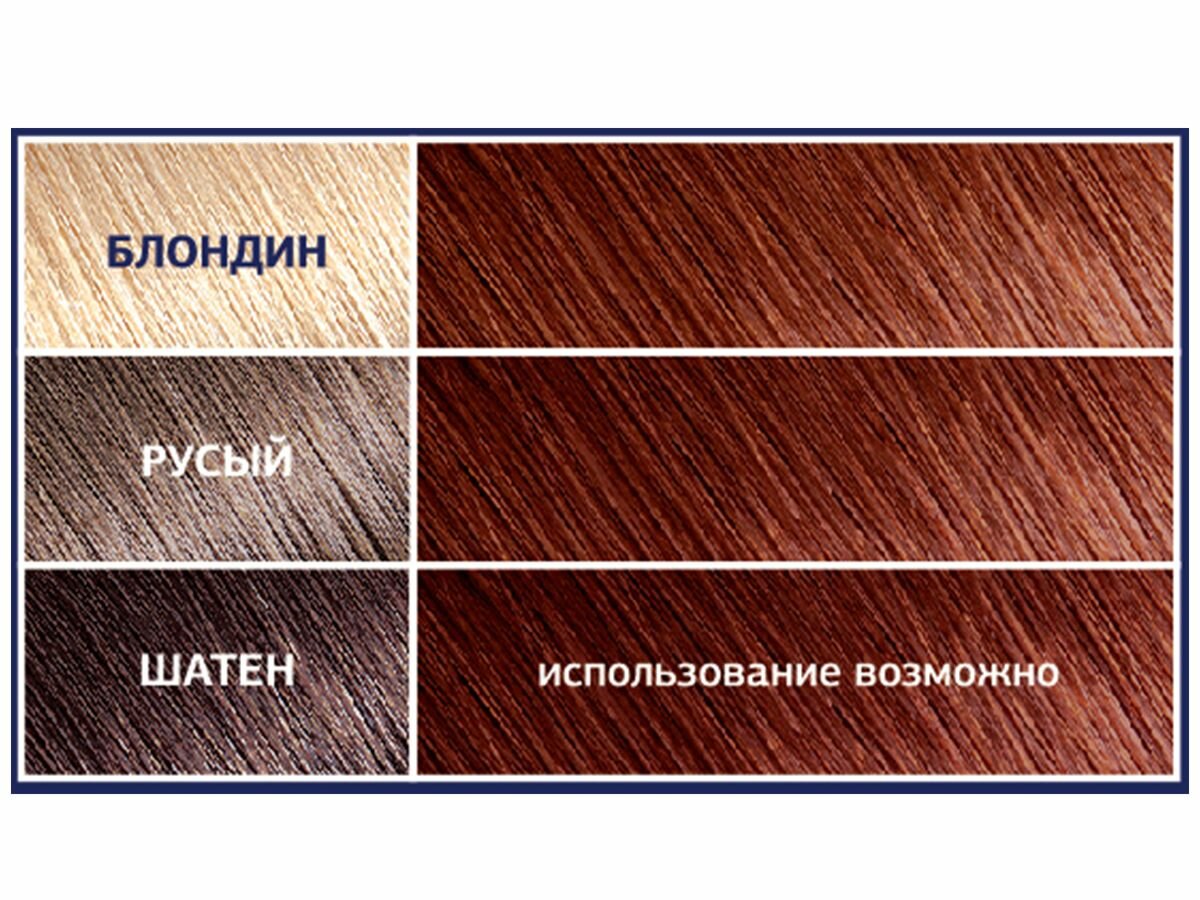 | Дополнительная информация | тест на чувствительности: приготовьте смесь из небольшого количества крем-основы и такого же объёма оксигента, перемешав их в любой неметаллической посуде. Не следует готовить весь объем краски. Нанесите приготовленную смесь на небольшой участок кожи на внутренней стороне локтевого сгиба или за ухом и оставьте на 10-15 минут. Затем смойте. Если в течение суток признаки аллергической реакции не появились, можете использовать краску |