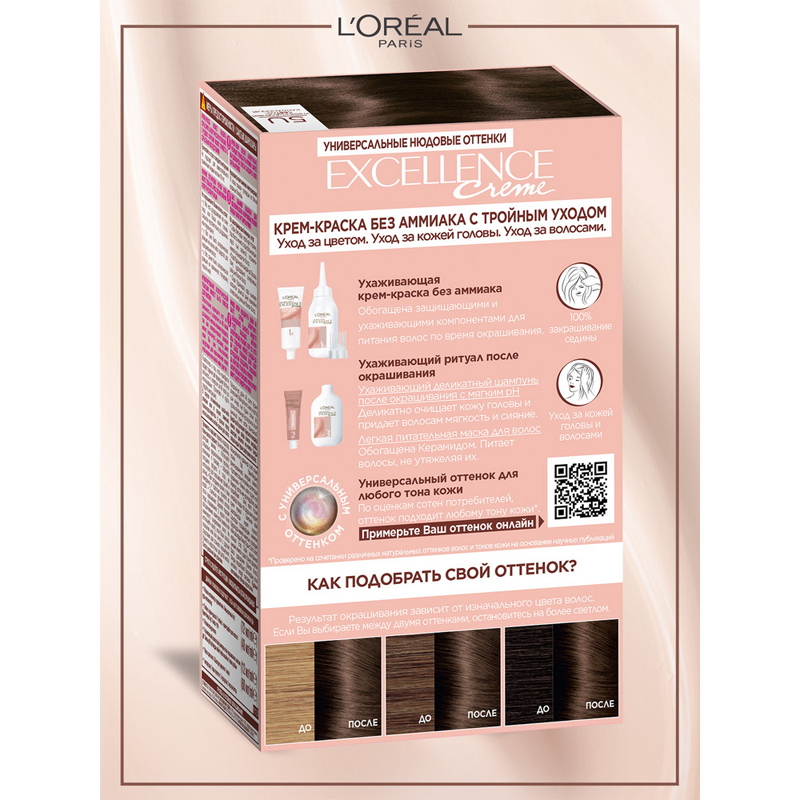 Крем-краска для волос L'Oreal Paris без аммиака Excellence Crème Универсальные Нюдовые Оттенки оттенок 5U универсальный светло-каштановый информация: