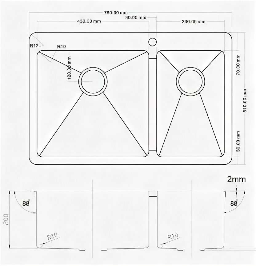 Мойка кухонная ZORG LIGHT ZL R 780-2-510-L GRAFIT ZORG Мойка кухонная ZORG LIGHT ZL R 780-2-510-L GRAFIT