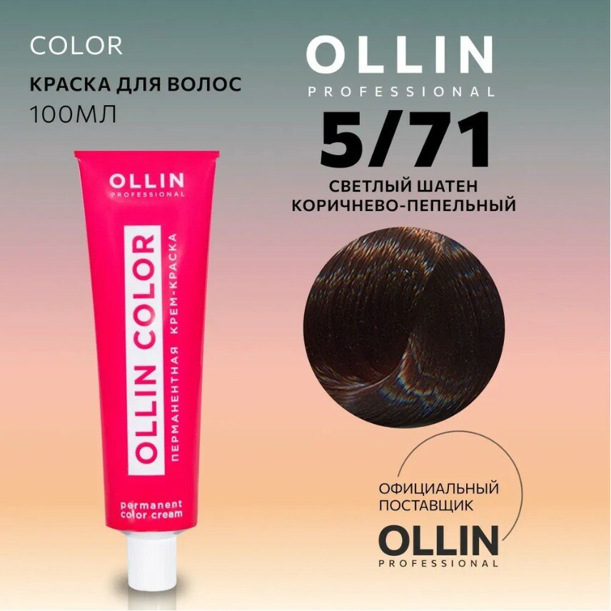 Ollin Color - Оллин Колор Стойкая крем-краска для волос, 100 мл - OLLIN COLOR 5/71 светлый шатен коричнево-пепельный информация: