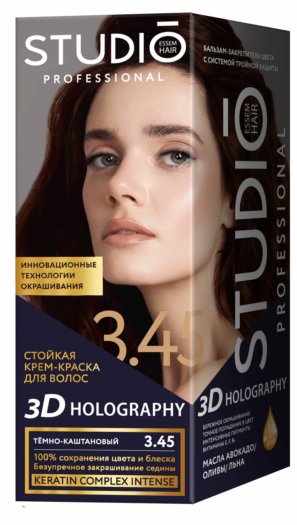Studio, крем-краска для волос 3Д Голографик, 3.45 Тёмно-каштановый, 115 мл информация: