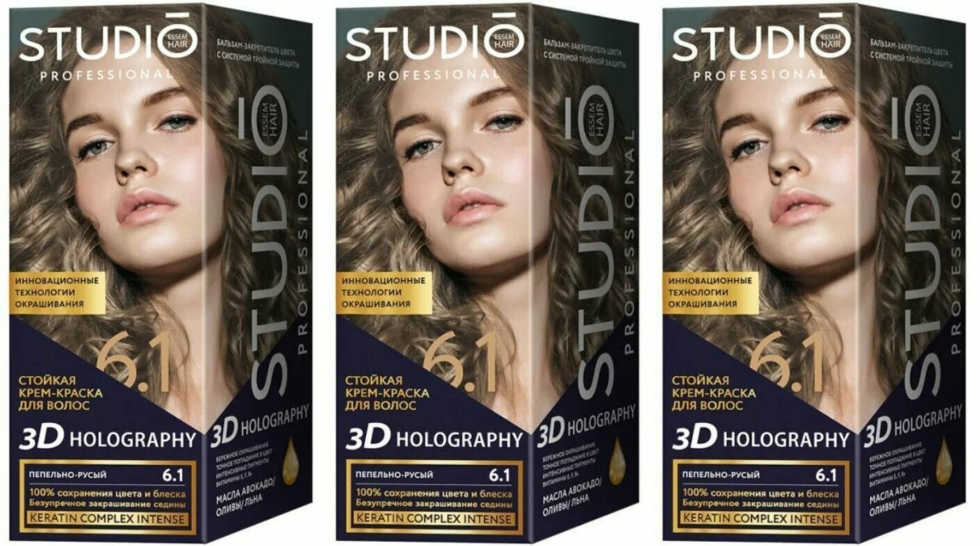 Крем-краска для волос Studio, Professional Professional 3D Holography, 6.1 Пепельно-русый, 115 мл, 3 шт 884 ₽