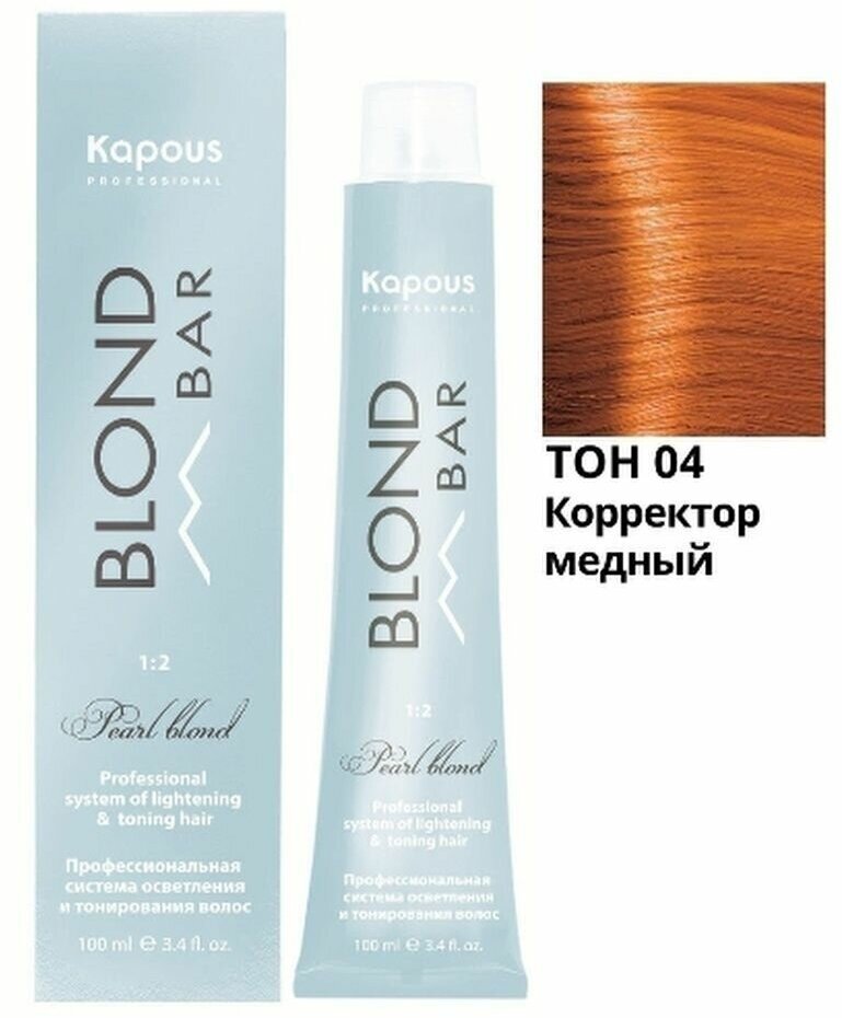 Kapous Professional Крем-краска для волос, с экстрактом жемчуга, Корректор, Blond Bar, 04, медный, 100 мл информация: