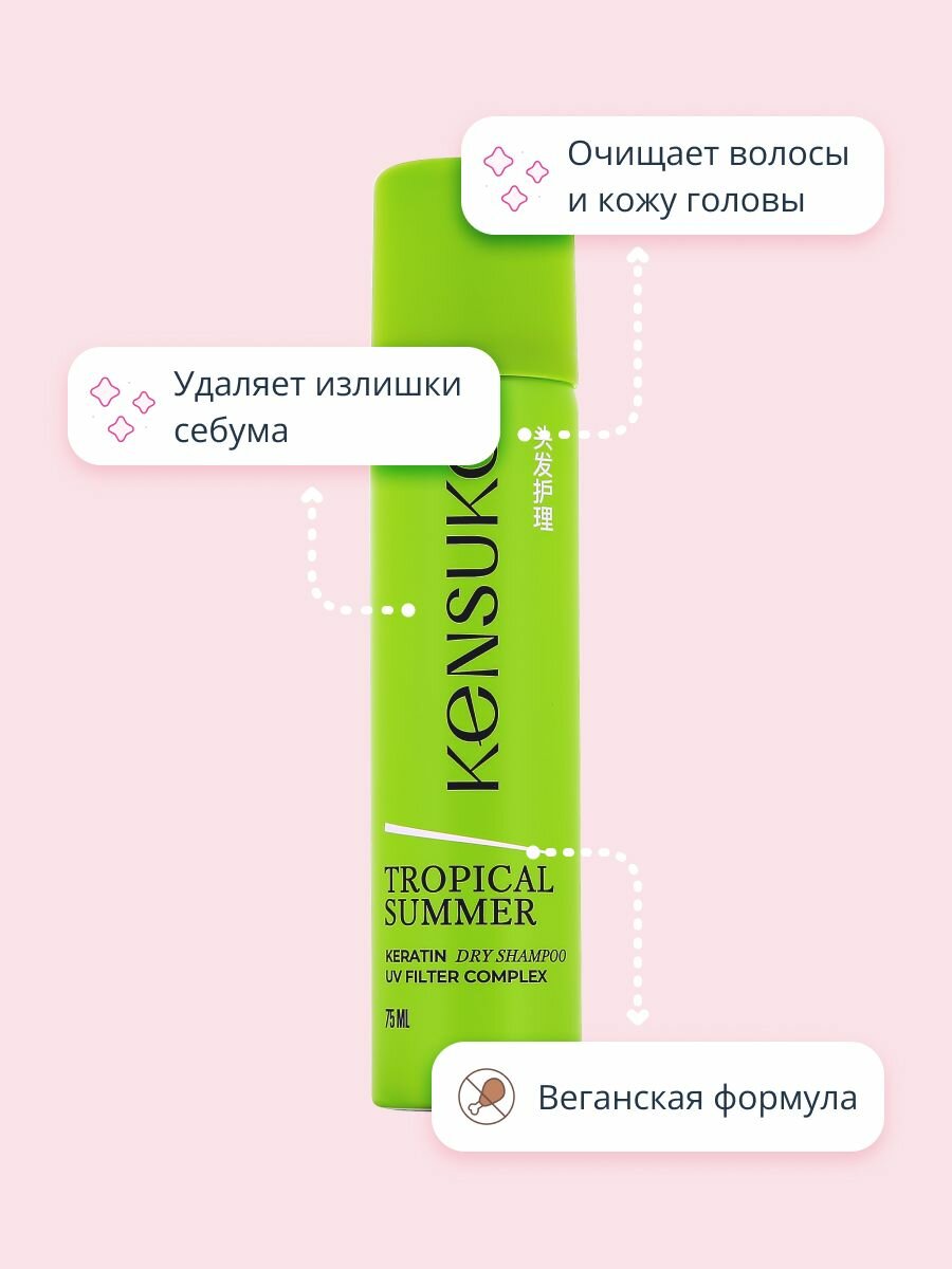 Шампунь для волос KENSUKO Tropical summer с фруктово-тропическим ароматом (сухой), 75 мл информация: