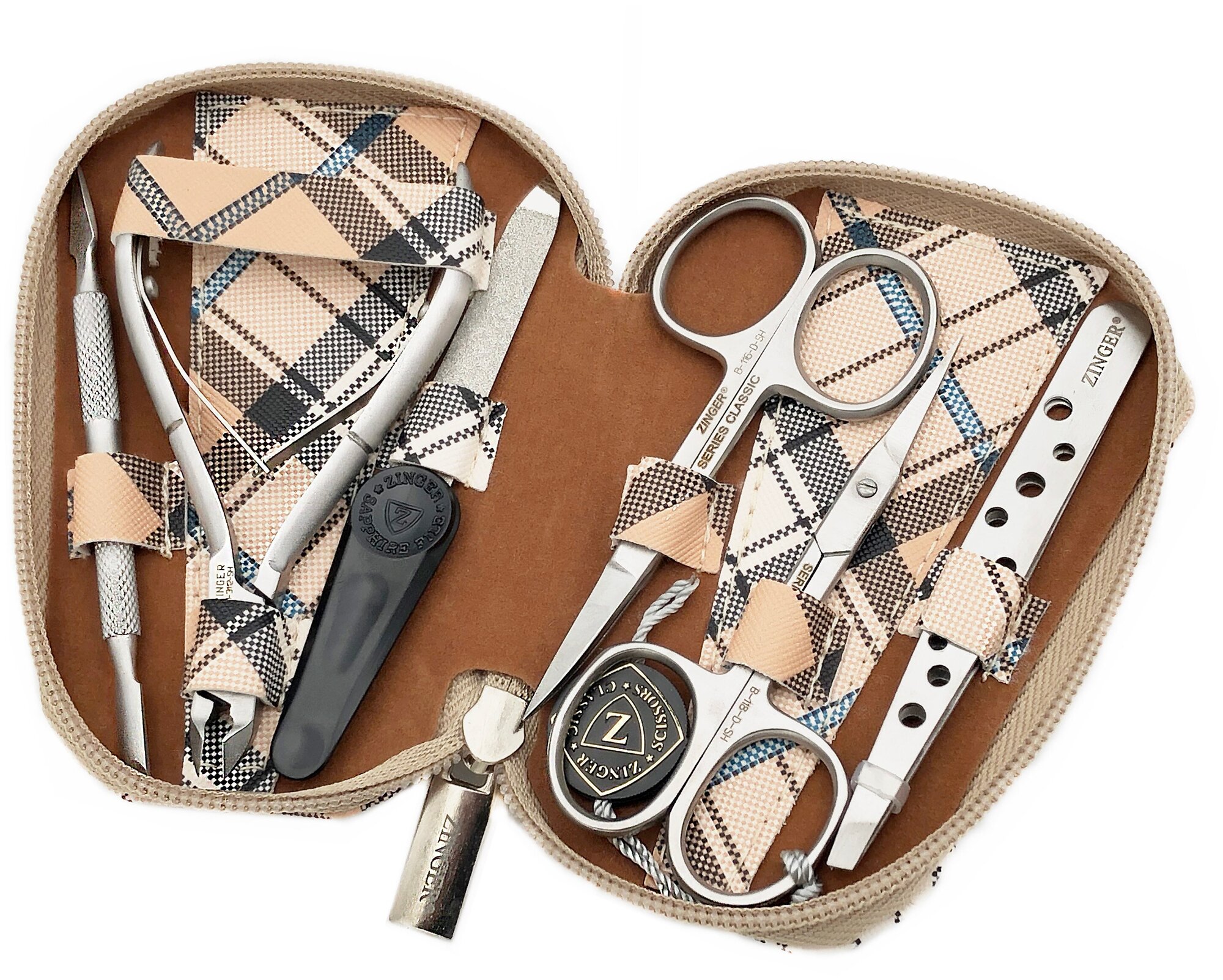 Маникюрный набор Zinger 7103, 6 предметов, серебристый/бежевый клетка информация: