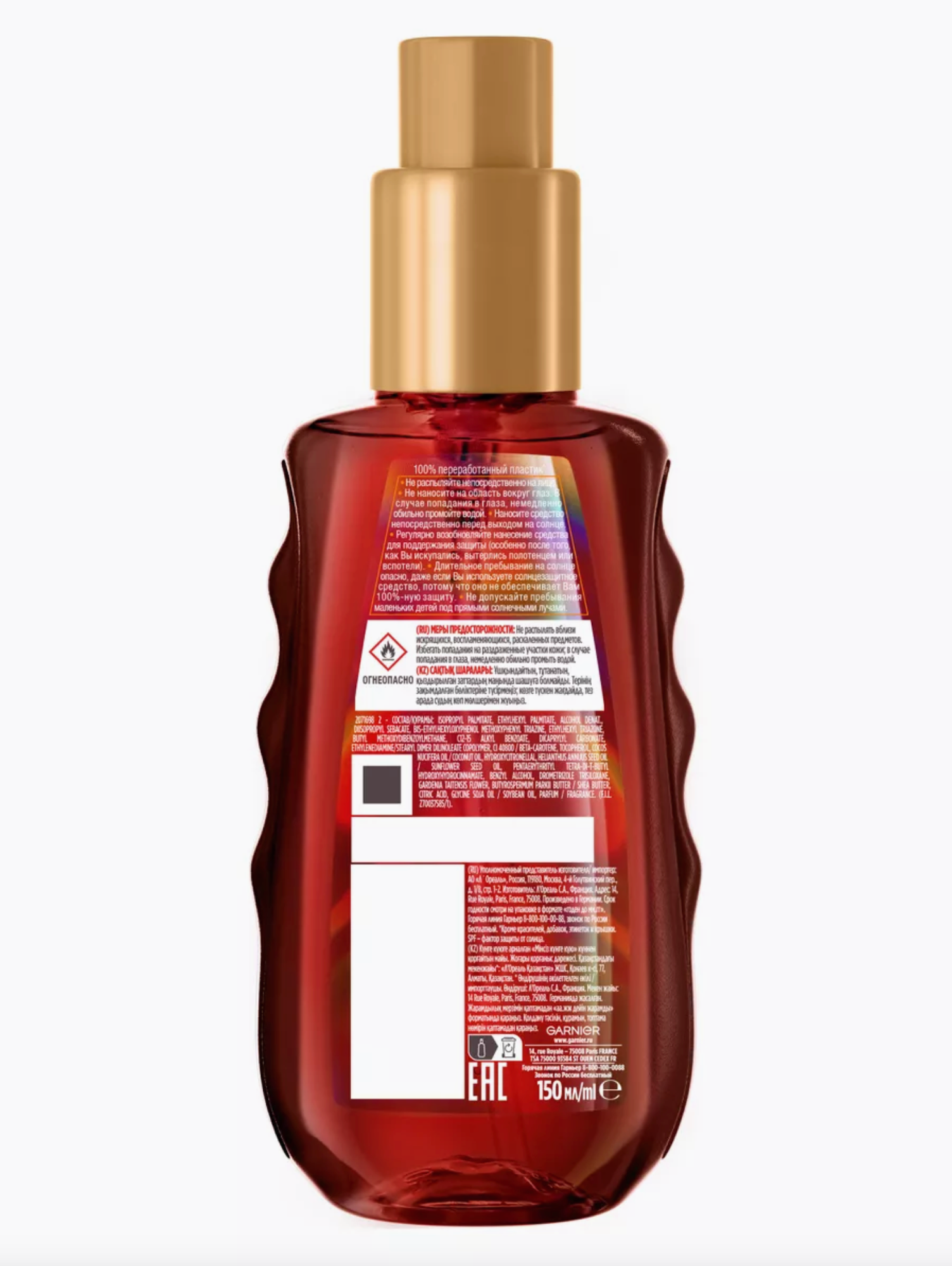 Солнцезащитное масло для ровного загара Garnier Ambre Solaire Идеальный загар Солнцезащитное масло SPF 50 информация: