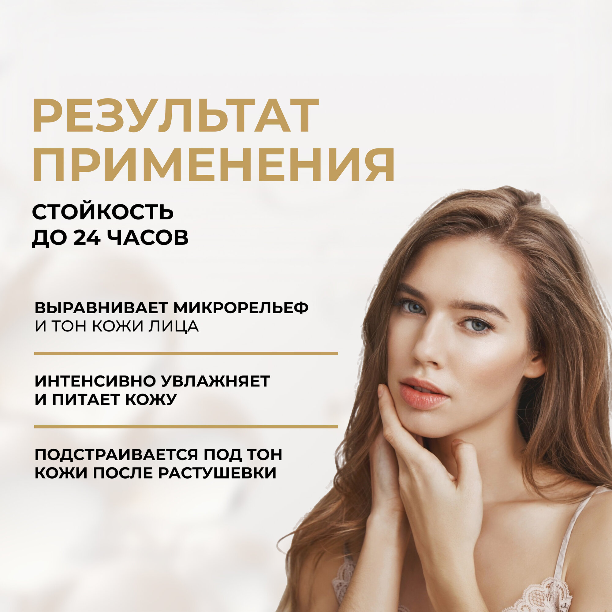 | Эффект | антибактериальный / восстановление / выравнивание поверхности кожи / защита от солнца / маскировка несовершенств / матирование / мерцание / омоложение / питание / повышение упругости / разглаживание морщин / тонизирование / тонирование / увлажнение / улучшение цвета |