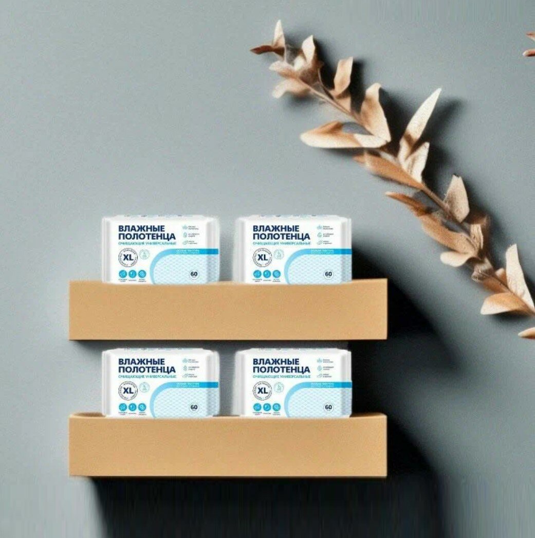 Влажные салфетки ( полотенца) очищающие, большой размер XL (2 упаковки по 60 шт.) 400 ₽