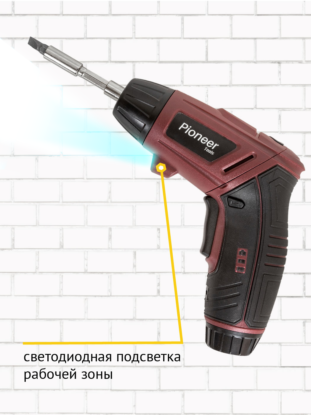 Отзывы на Отвертка аккумуляторная, Pioneer, CS-M0401, 4 В, 2 А.ч, Li-ion, 3.5 Н-м, 200 об/мин