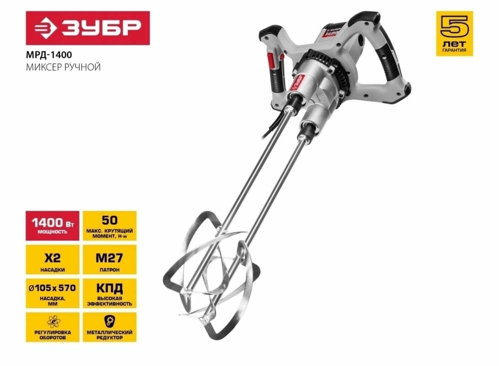 Миксер ручной двойной электрический ЗУБР 1400Вт информация: