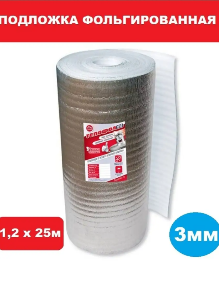 Отзывы на Подложка фольгированная Тепофол теплоизоляция размер 1,2х25м толщина 3мм