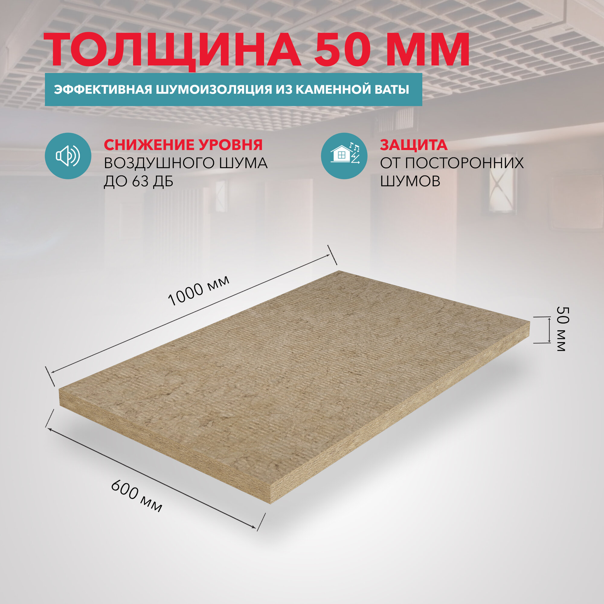 Шумоизоляция Rockwool Акустик Баттс 1000x600x100 мм 3 м2, объем упаковки 0.3 м3