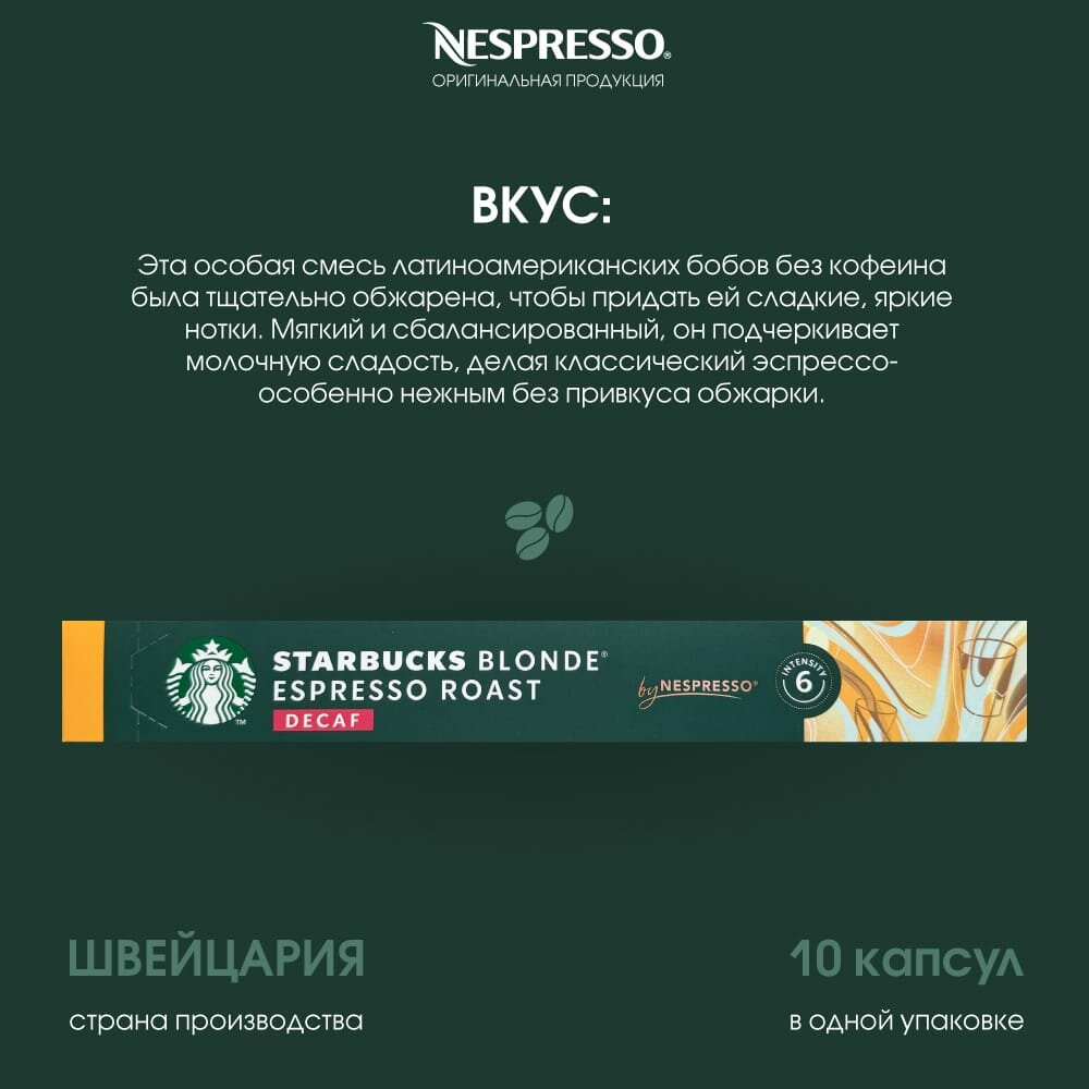 "Starbucks Blonde Espresso Decaf" капсулы для кофемашины Nespresso 10шт 1 096 ₽