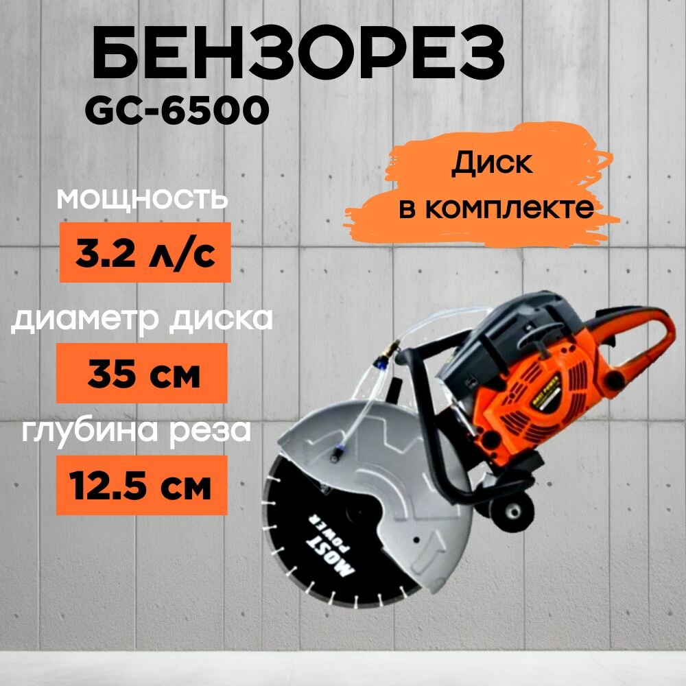 Бензорез MOST GC-6500, мощность 3.2 л/с, диаметр диска 35см, диск в комплекте, швонарезчик информация: