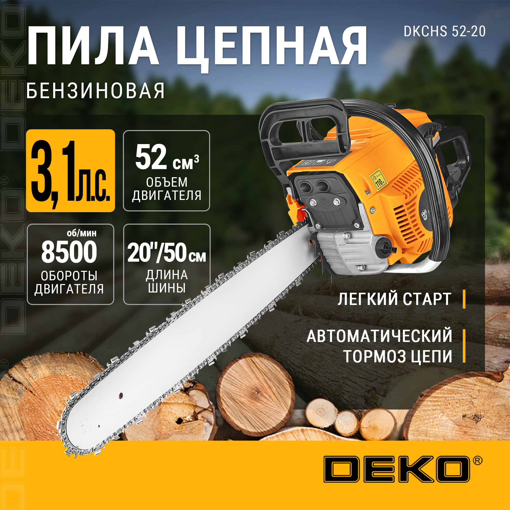 Бензопила DEKO, 3 л/с, 52 см³, 20 дюймов информация: