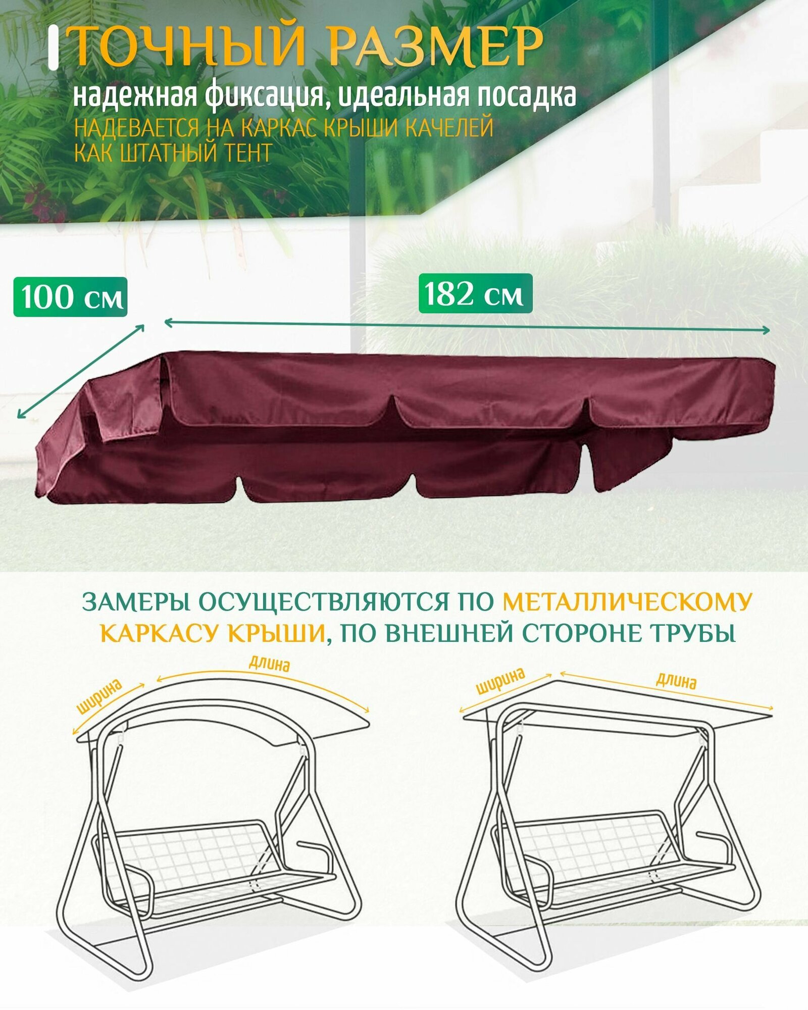 Тент для садовых качелей Стандарт 2 (182х100 см) бордовый информация: