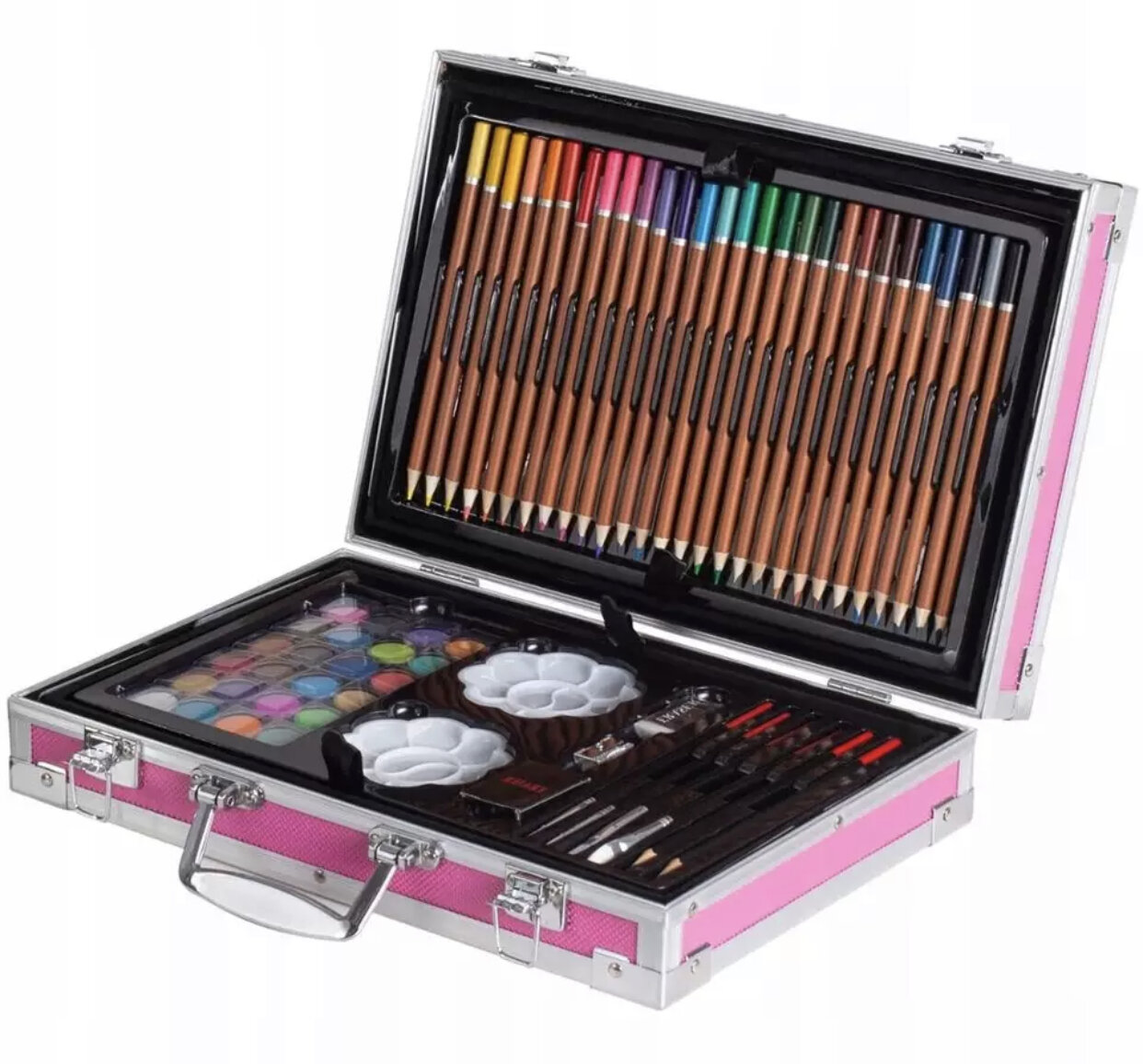 10 цен на Набор для рисования "Чемодан творчества" с красками, в алюминиевом кейсе, 145 предметов, розовый