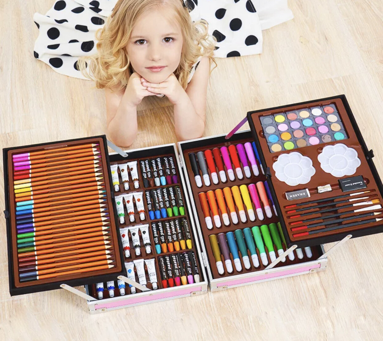 Набор для рисования и творчества 220 предметов в деревянном кейсе