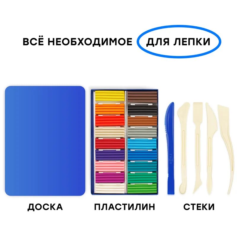 | Комплектация | - акварель медовая 24 цвета; - гуашь 12 цветов; - пластилин 18 цветов; - карандаши цветные 12 цветов; - восковые мелки 12 цветов; - набор стеков 4 шт.; - кисти Пони круглые № 2, №5, №8; - кисти Синтетика плоские №3, № 5; - набор акварельной бумаги 10 листов; - доска для лепки; - стакан-непроливайка; - палитра овальная |