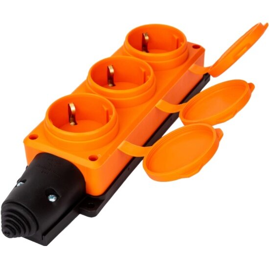 Колодка "UNIVersal" 3-х местная однофазная с заглушками "Компакт" с/з каучук 16А 250В IP44, оранжевая (еврослот)