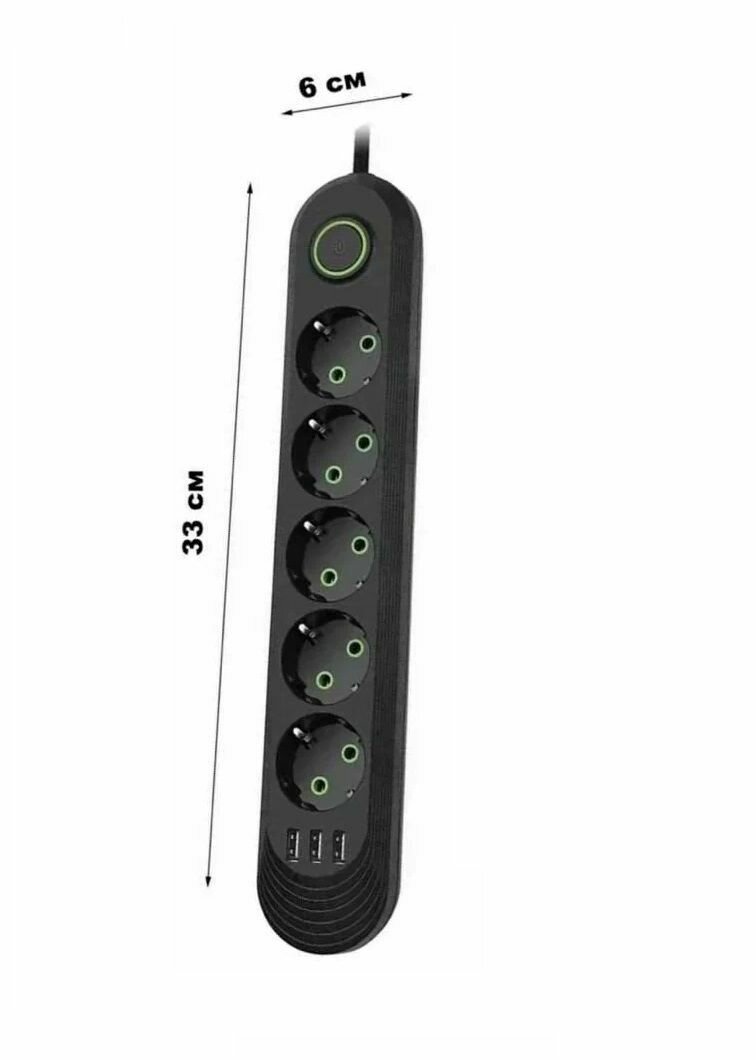 Сетевой фильтр 5 метров с 5 розетками 3 USB 2500 Вт (удлинитель, адаптер для зарядки, пилот, тройник), с предохранителем и заземлением информация: