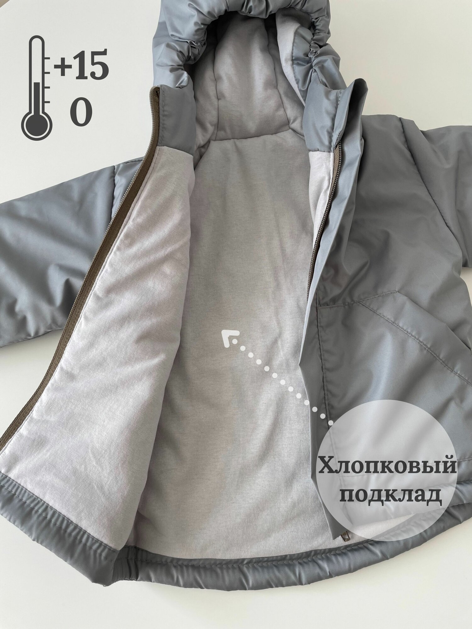 10 цен на Куртка для девочки/для мальчика демисезонная утепленная с капюшоном на хлопковом подкладе Серая 92