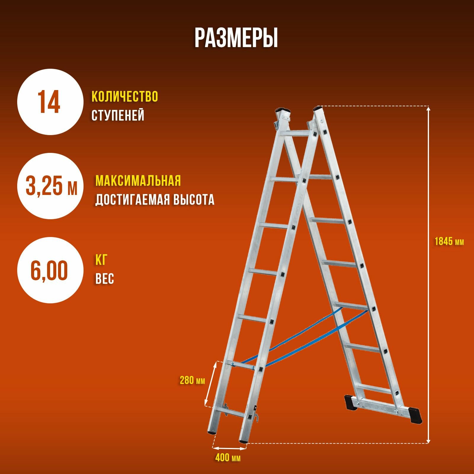 Лестница алюминиевая двухсекционная ALVEX 2х7, 2 секции по 7 ступеней информация: