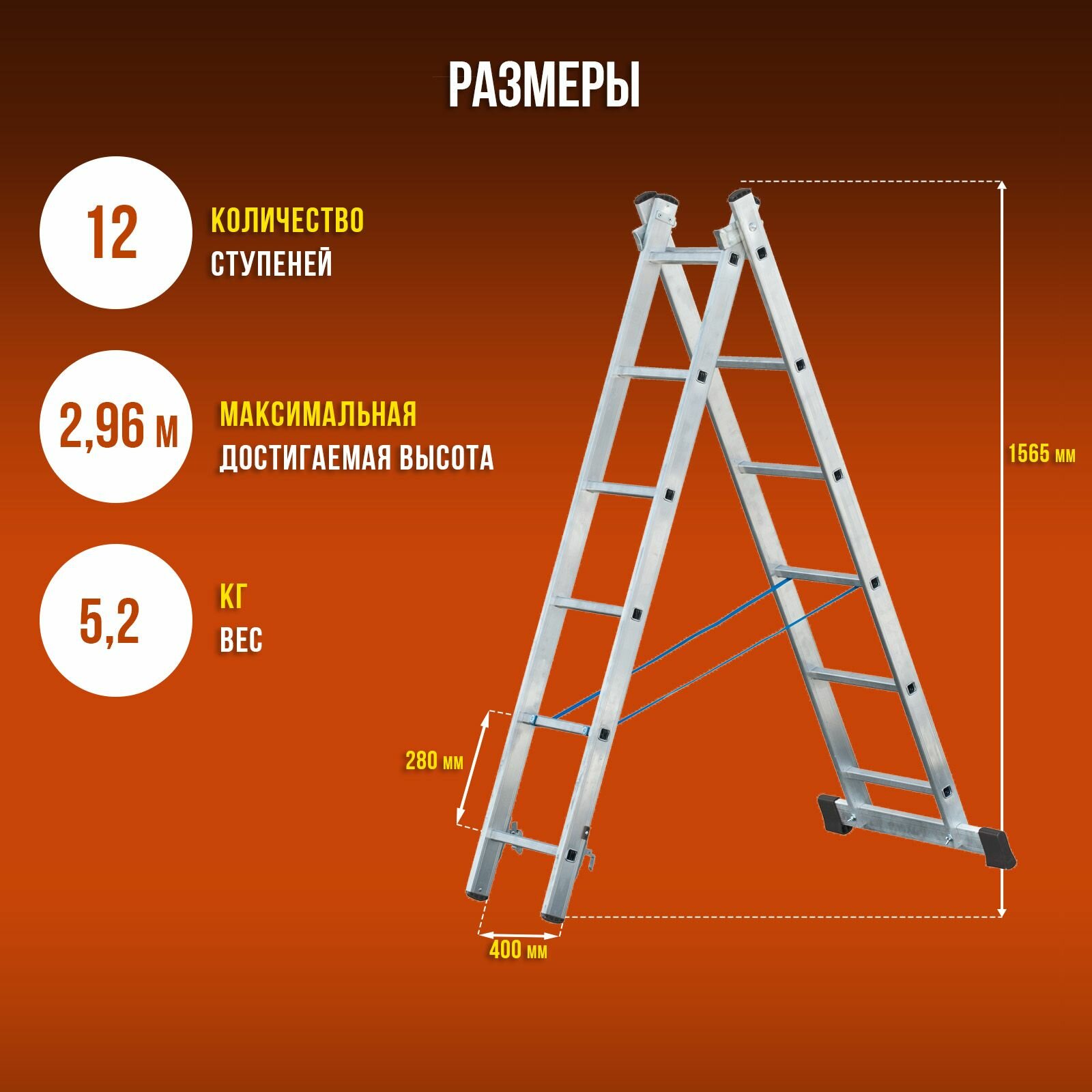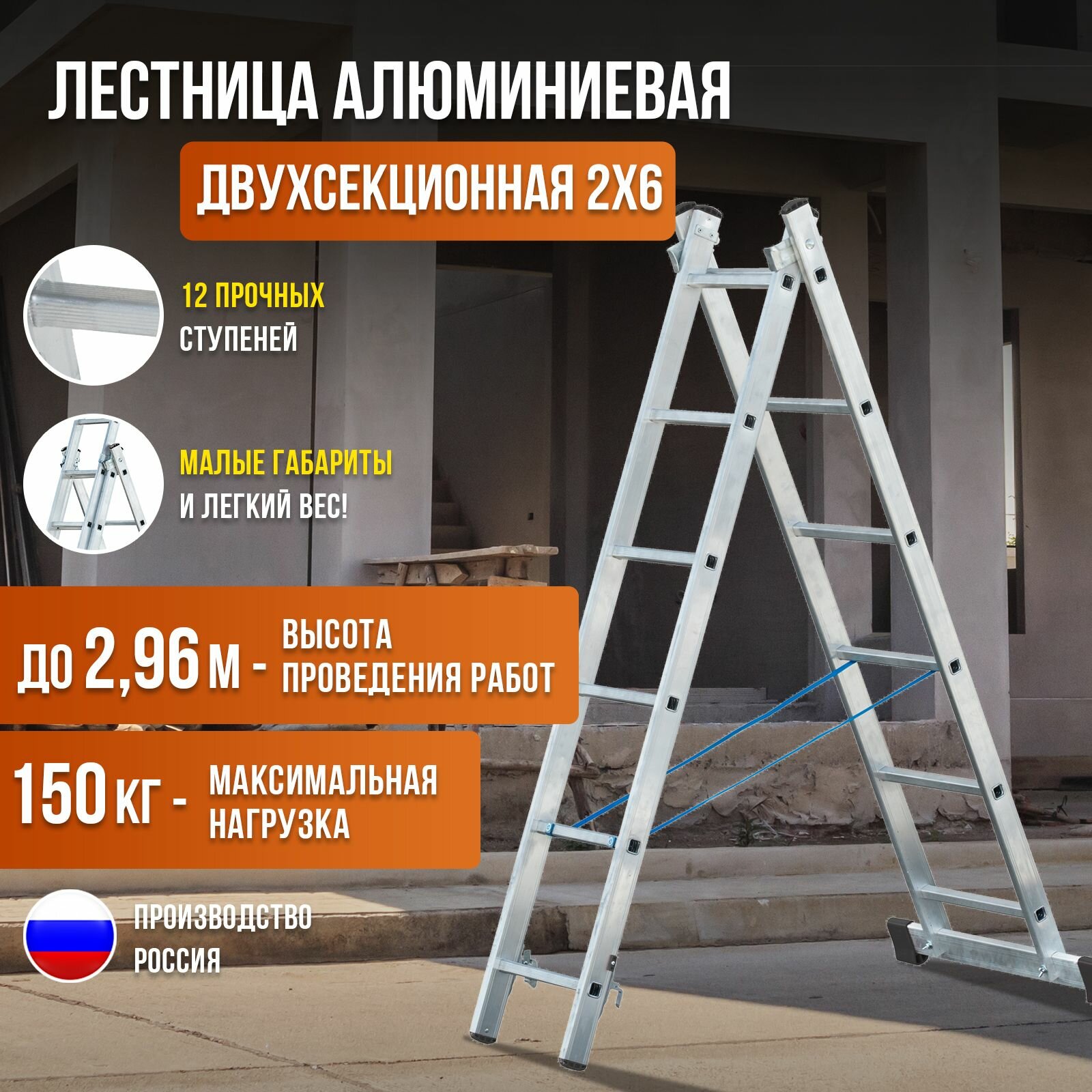 Лестница алюминиевая двухсекционная ALVEX 2х6, 2 секции по 6 ступеней информация: