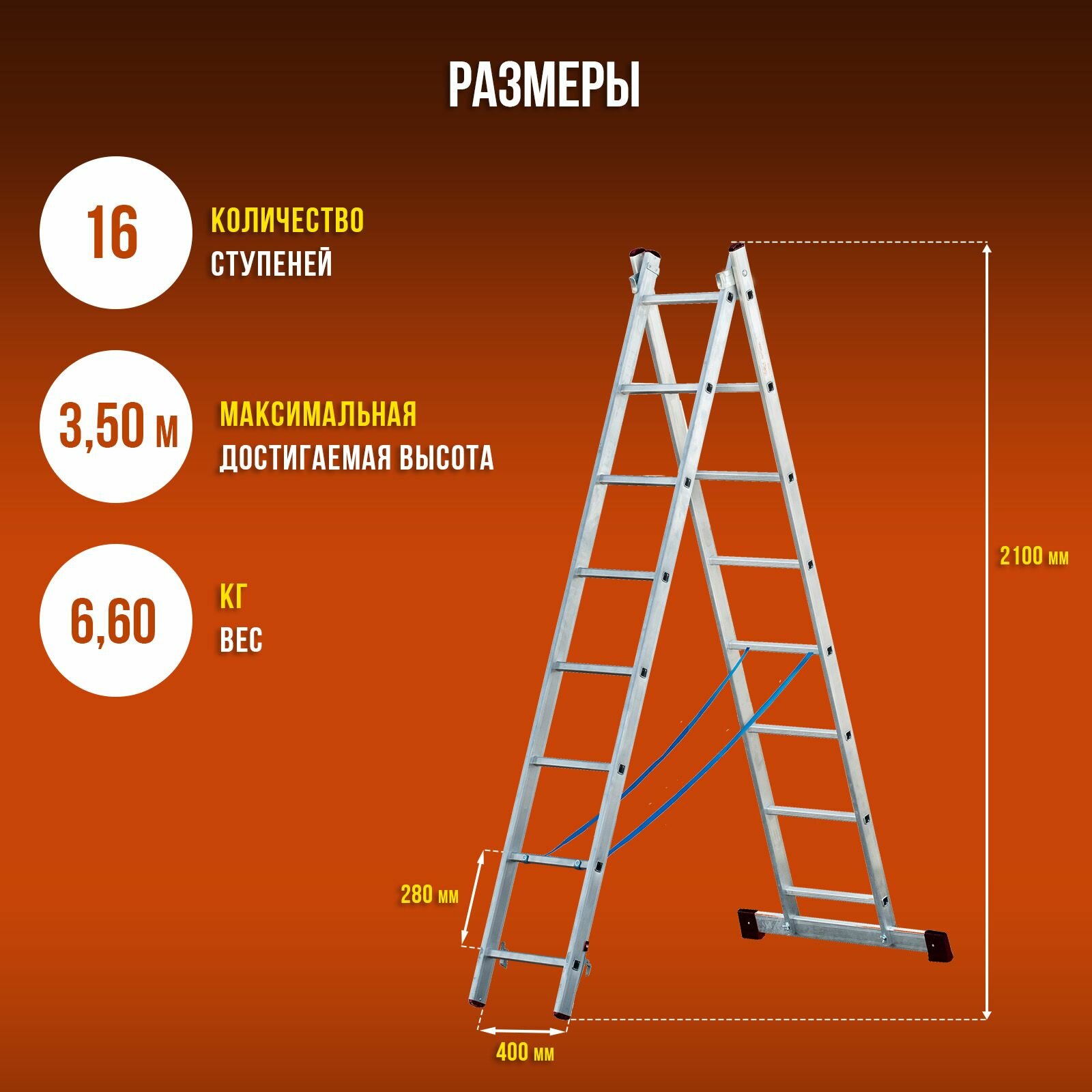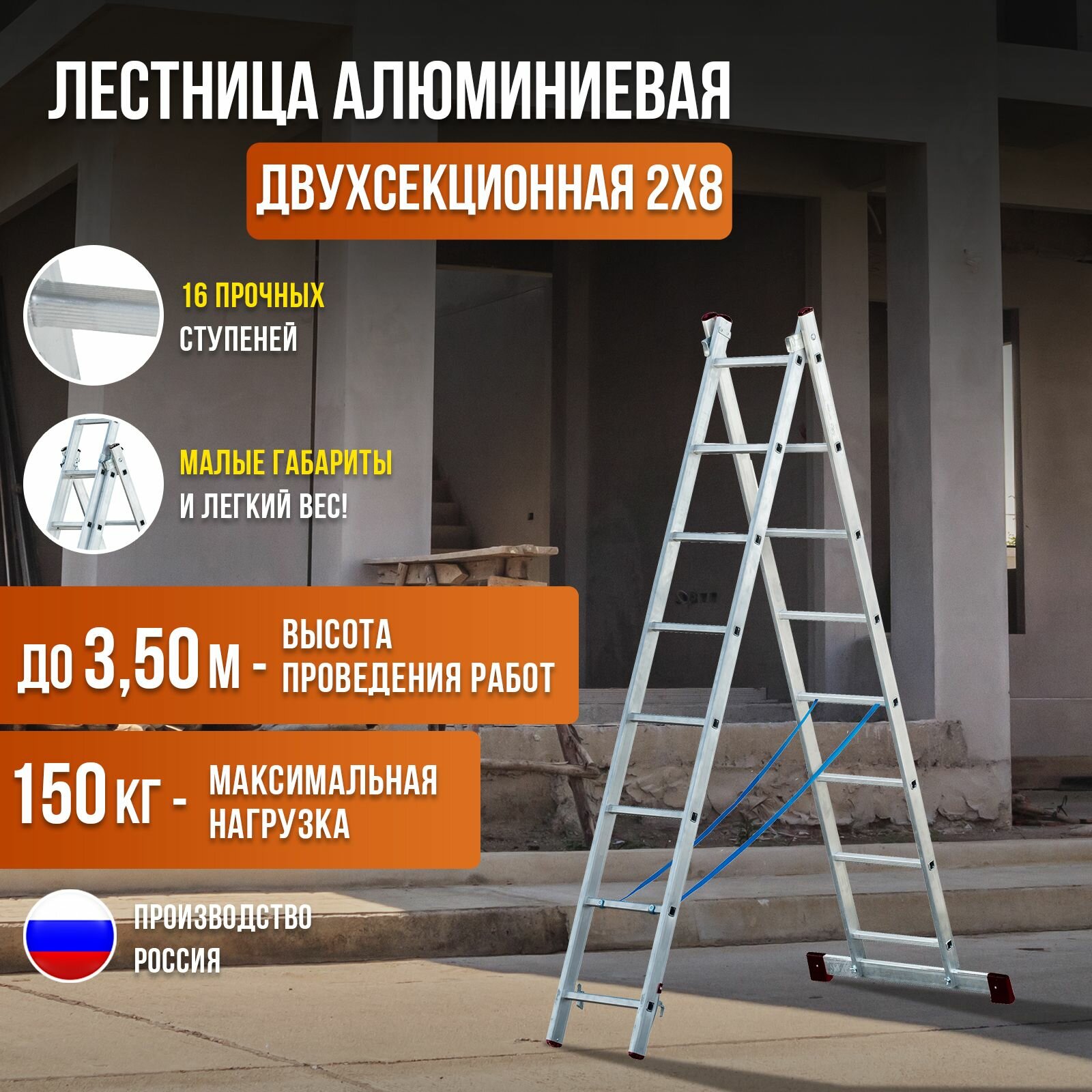 Лестница алюминиевая двухсекционная ALVEX 2х8, 2 секции по 8 ступеней информация: