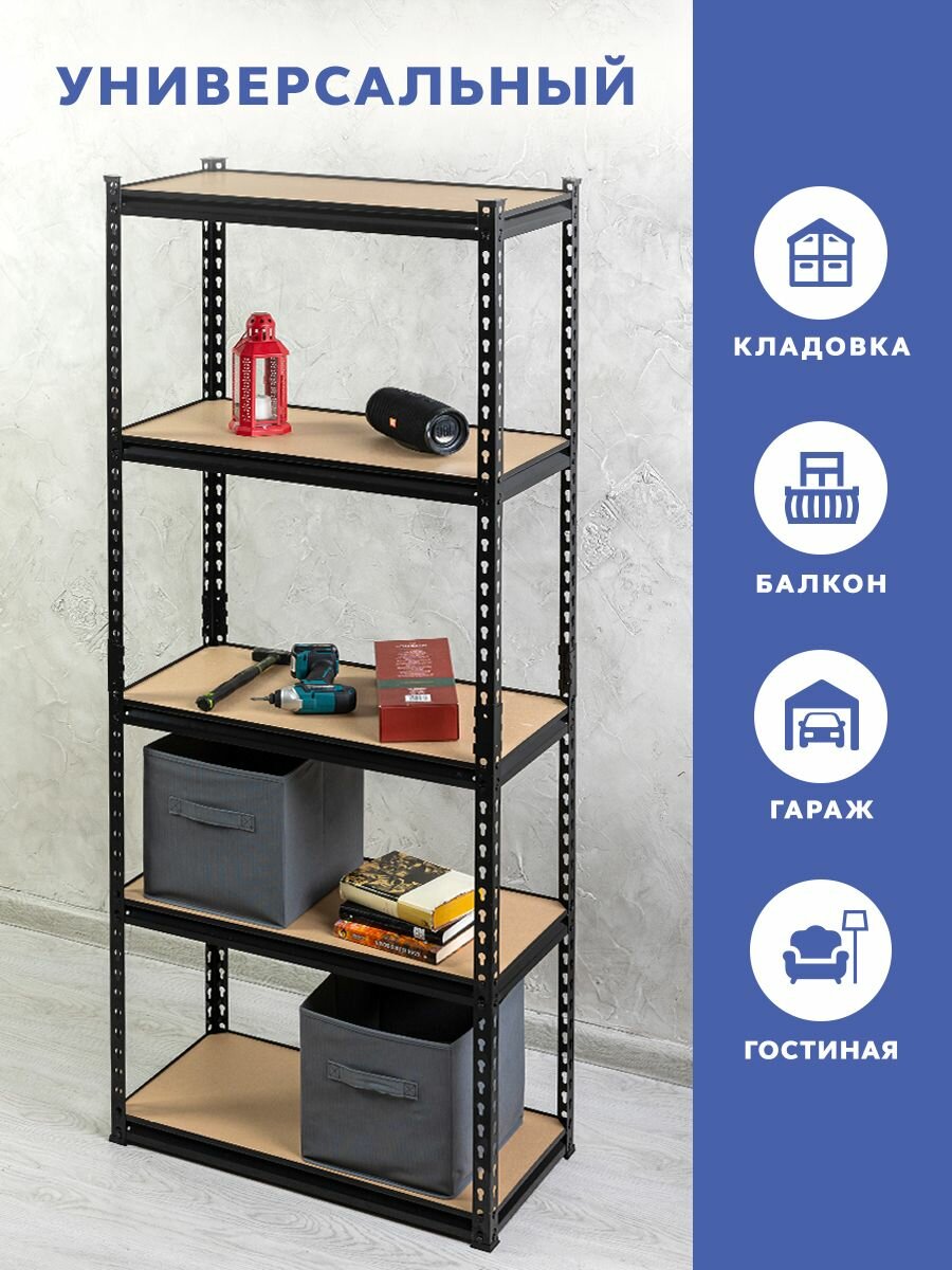 Стеллаж металлический безболтовой GASTRORAG GR-003-5, 5 полок МДФ, размеры 180х90х40 см, этажерка для кухни, мебель лофт, система хранения для дома, дачи и гаража 6 750 ₽