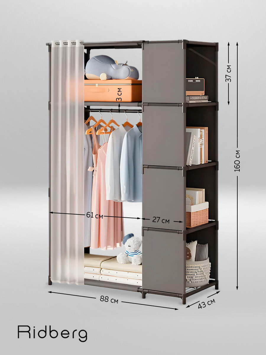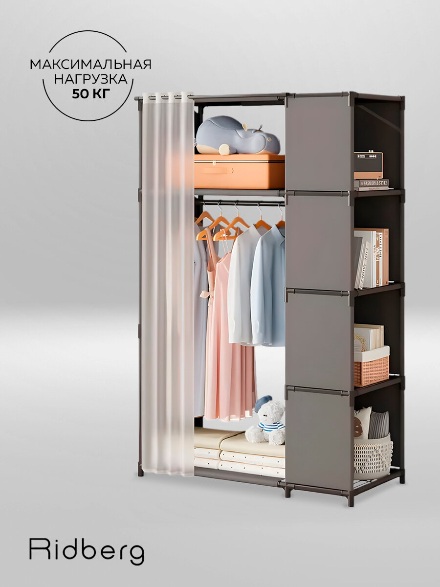 Вешалка напольная Ridberg Black, с закрытыми полками и шторкой, черная, нагрузка до 40кг 2 430 ₽