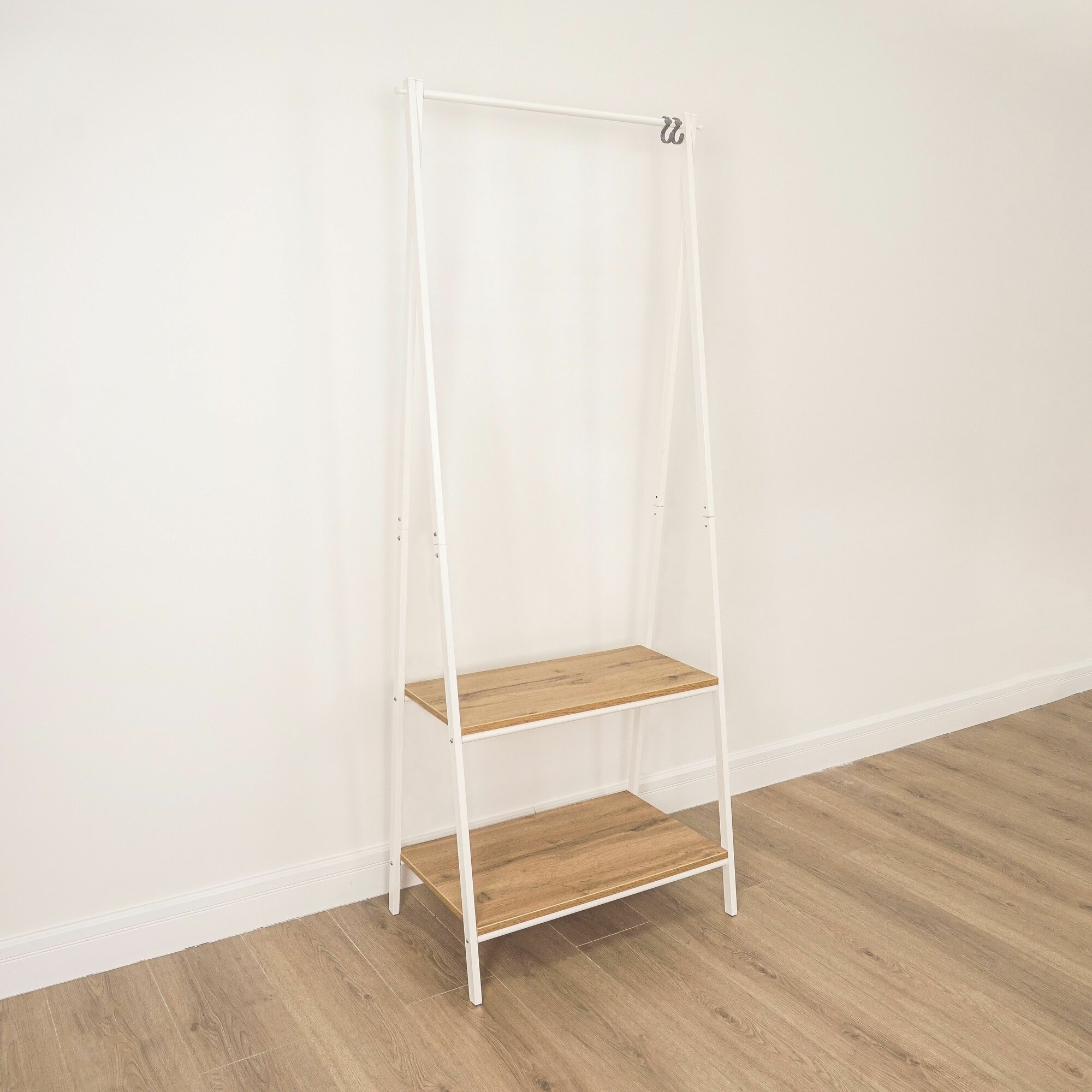 10 цен на Вешалка напольная ЗМИ Алабама 22, стойка лофт для хранения одежды, с ЛДСП полками для обуви, белая