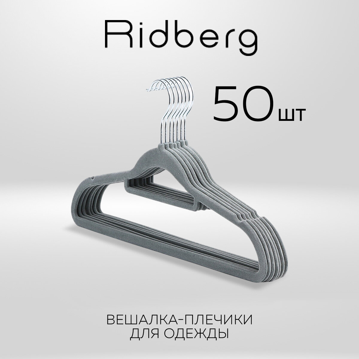 Вешалки плечики для одежды бархатные Ridberg, набор 50 шт (Grey) информация: