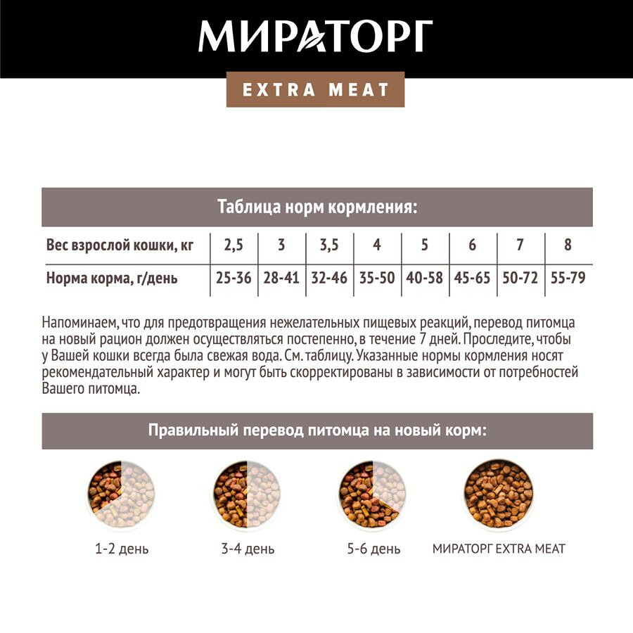 Мираторг Extra Meat полнорационный сухой корм для кошек, с говядиной Black Angus 400 г информация: