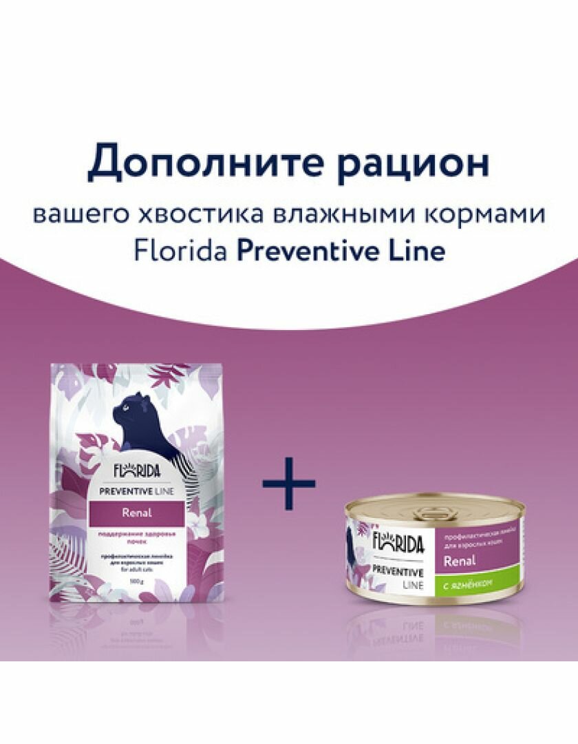 10 цен на Сухой корм FLORIDA для кошек профилактическая линия, Preventive Line renal, поддержание здоровья почек, с курицей и фитокомпозицией, 1,5 кг.