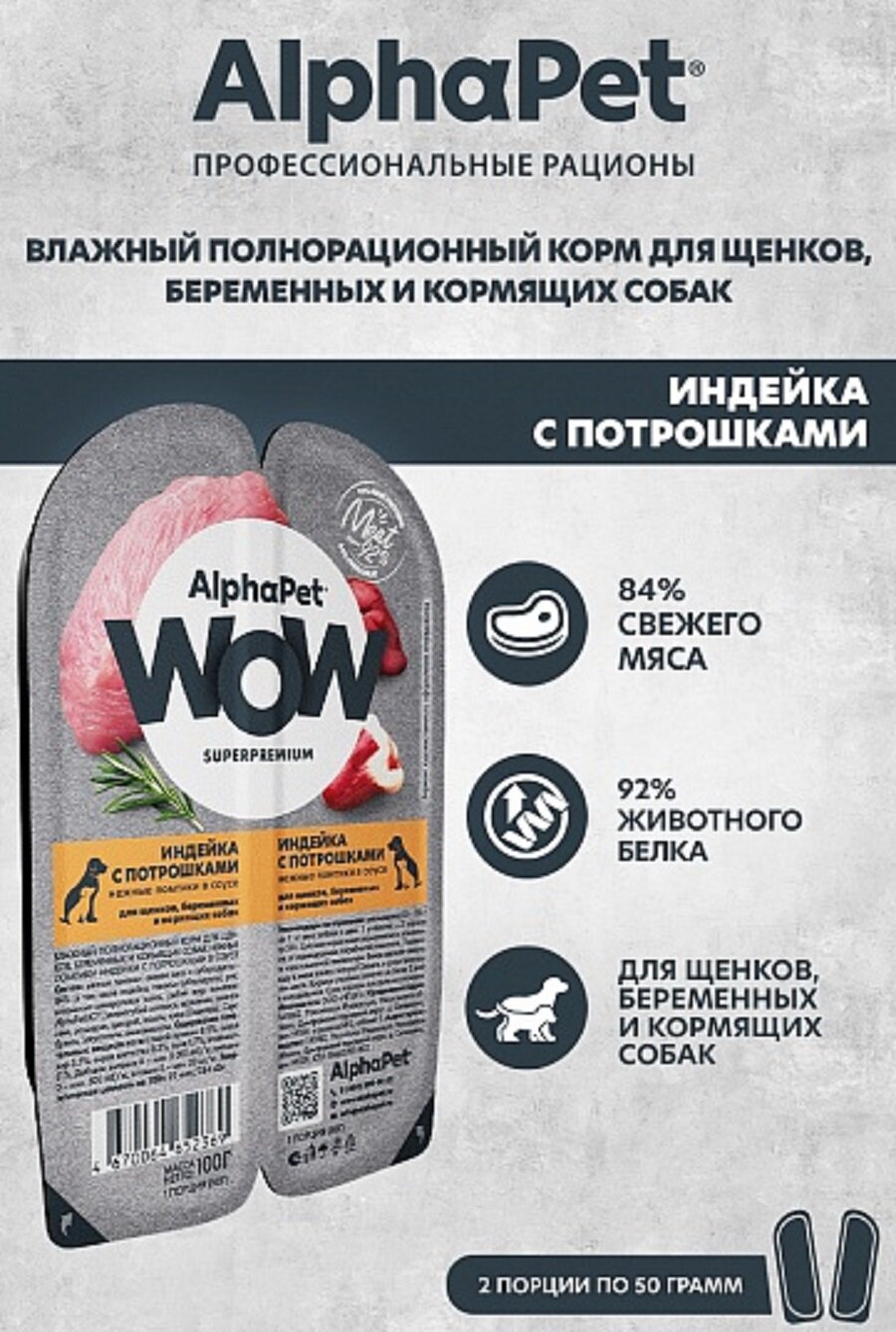 ALPHAPET WOW SUPERPREMIUM 100 гр ламистер влажный корм для щенков, беременных и кормящих собак индейка с потрошками 45 шт 4 080 ₽