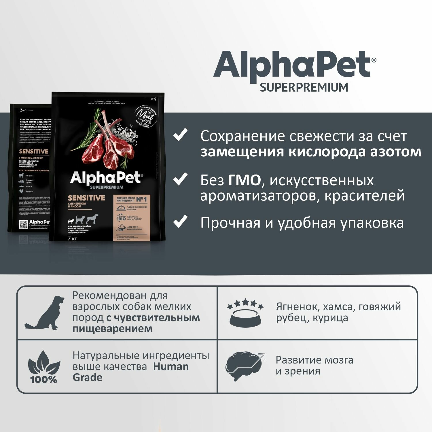 ALPHAPET SUPERPREMIUM корм сухой для взрослых собак мелких пород с чувствительным пищеварением с Ягненком и рисом 7кг информация: