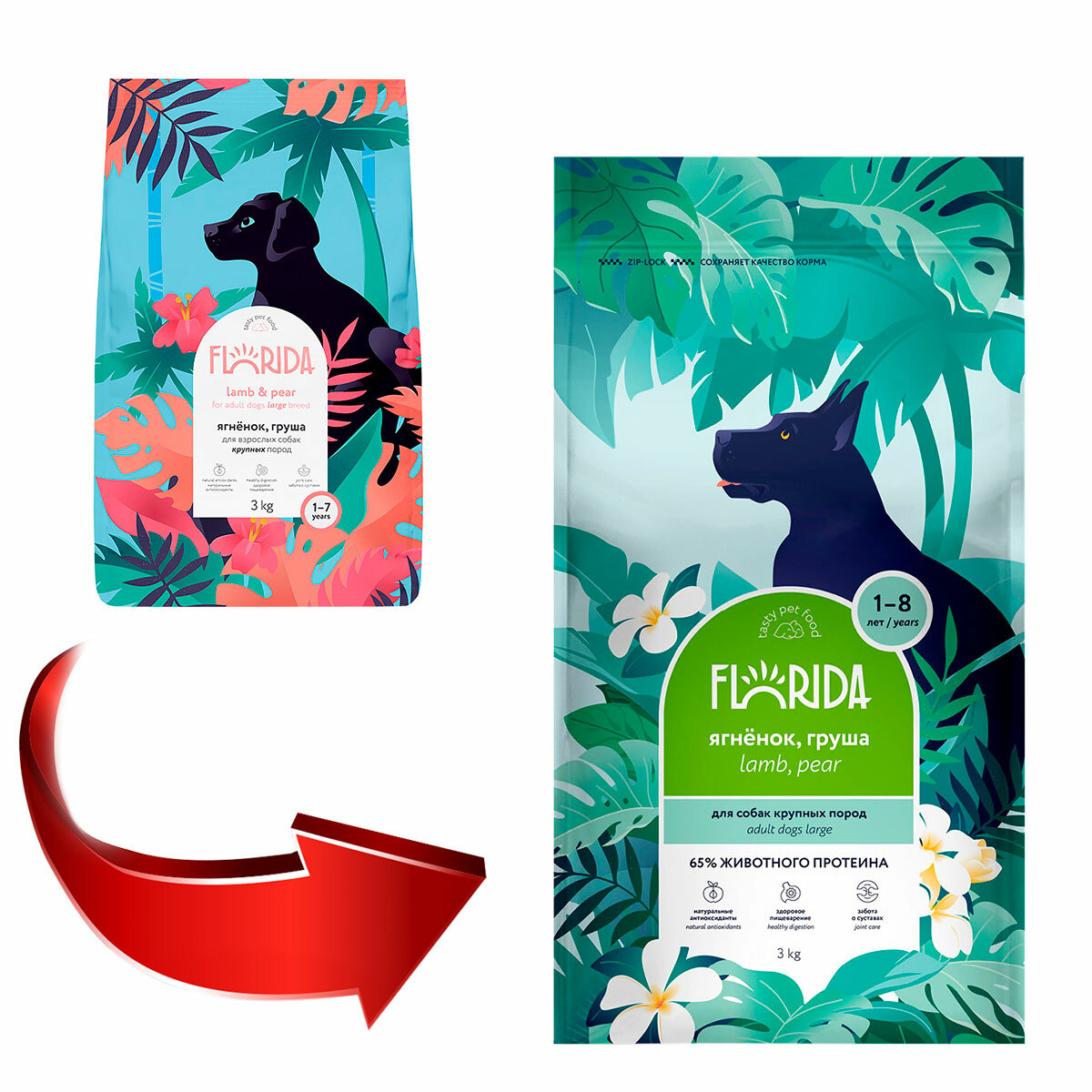 FLORIDA для взрослых собак крупных пород с ягненком и грушей (3 + 3 кг) информация: