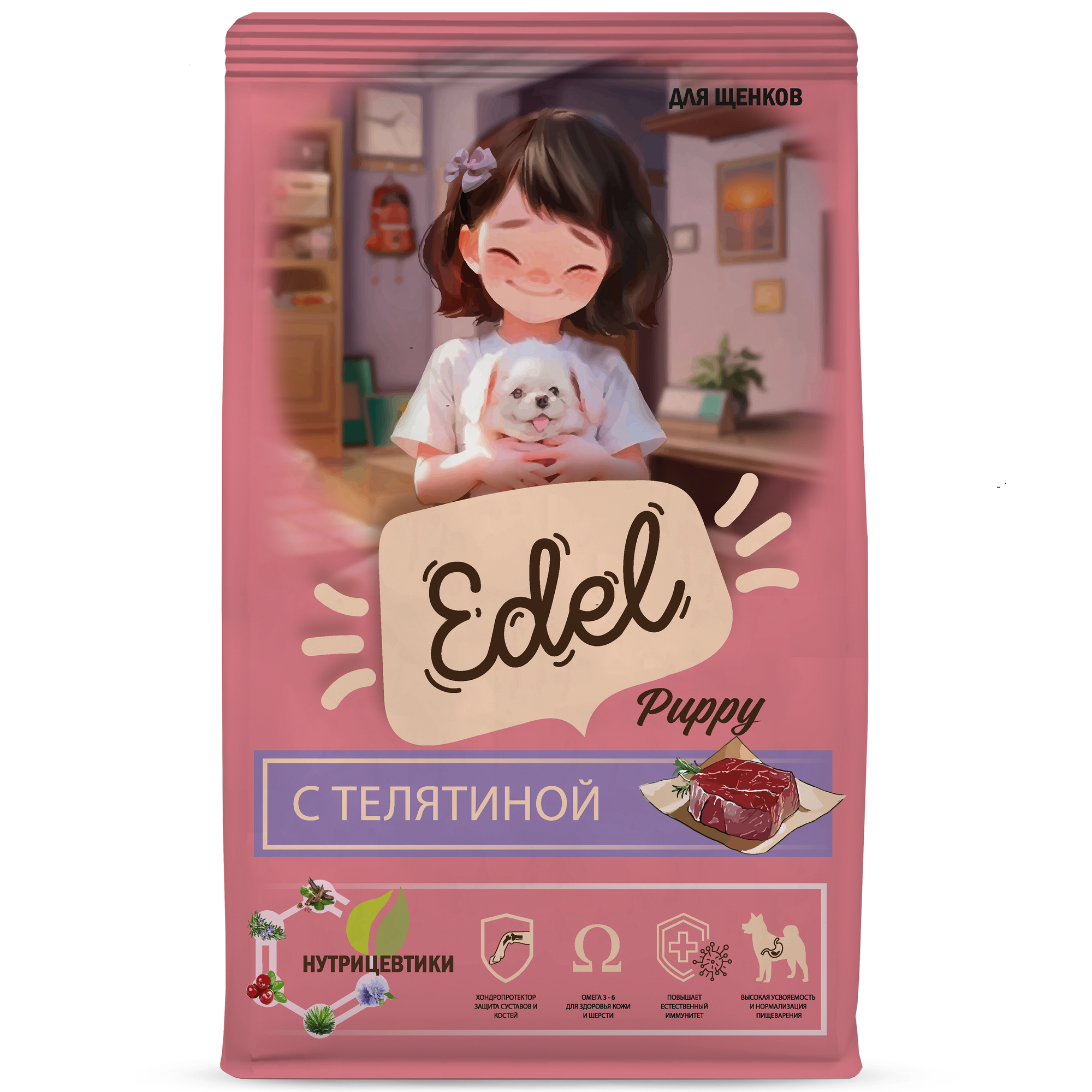 Сухой корм Edel Puppy All Breeds, полнорационный, для щенков и кормящих собак, с телятиной 1.8 кг информация: