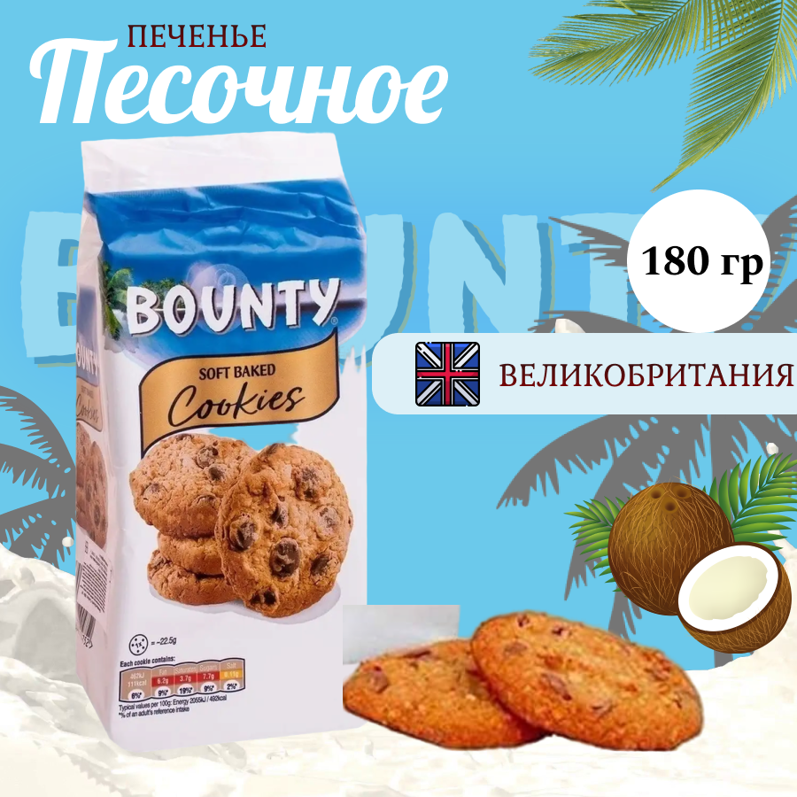 Bounty Soft Baked Cookies печенье бисквитное 180 гр информация: