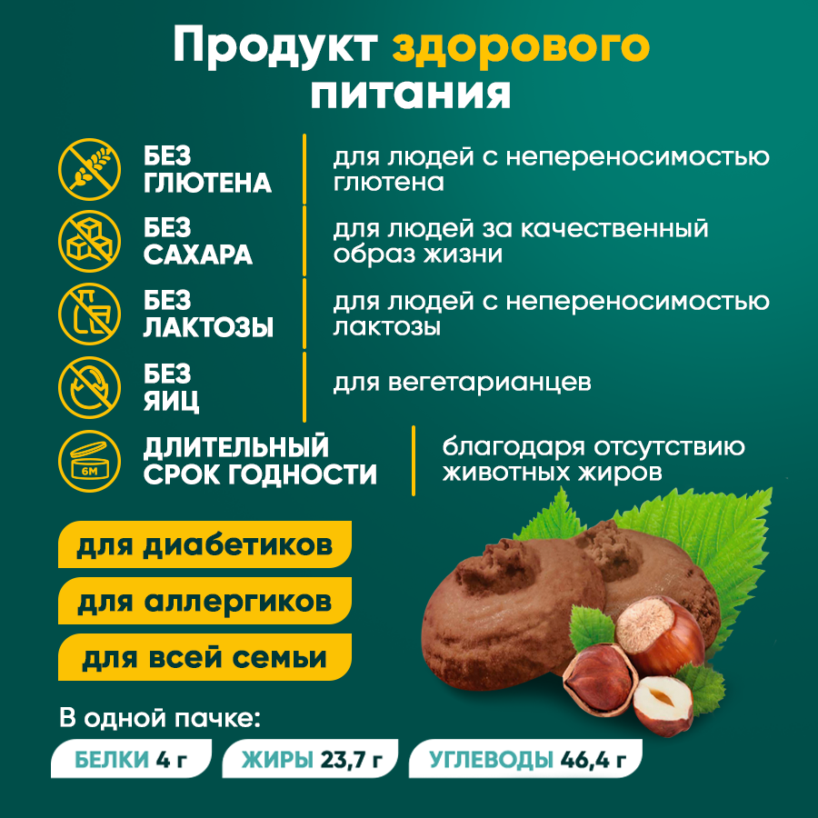 | Не содержит | ГМО / глютен / консерванты / красители / лактозу / пальмовое масло / сахар / яйца |