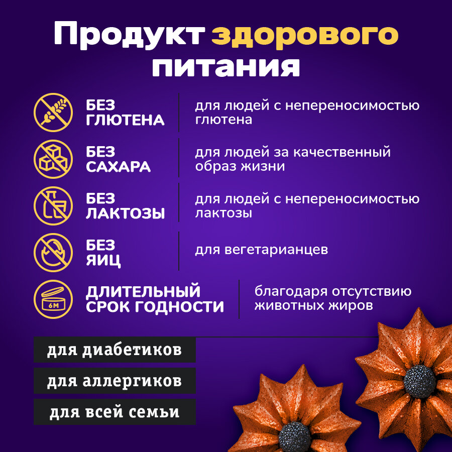 | Не содержит | ГМО / глютен / консерванты / красители / лактозу / пальмовое масло / сахар / яйца |