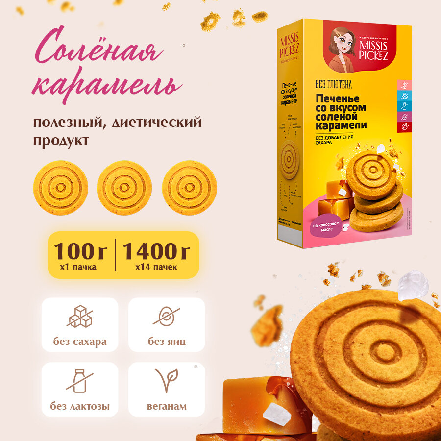 Печенье со вкусом соленой карамели без сахара без глютена "Missis Pickez" 14 пачек по 100 г 2 595 ₽