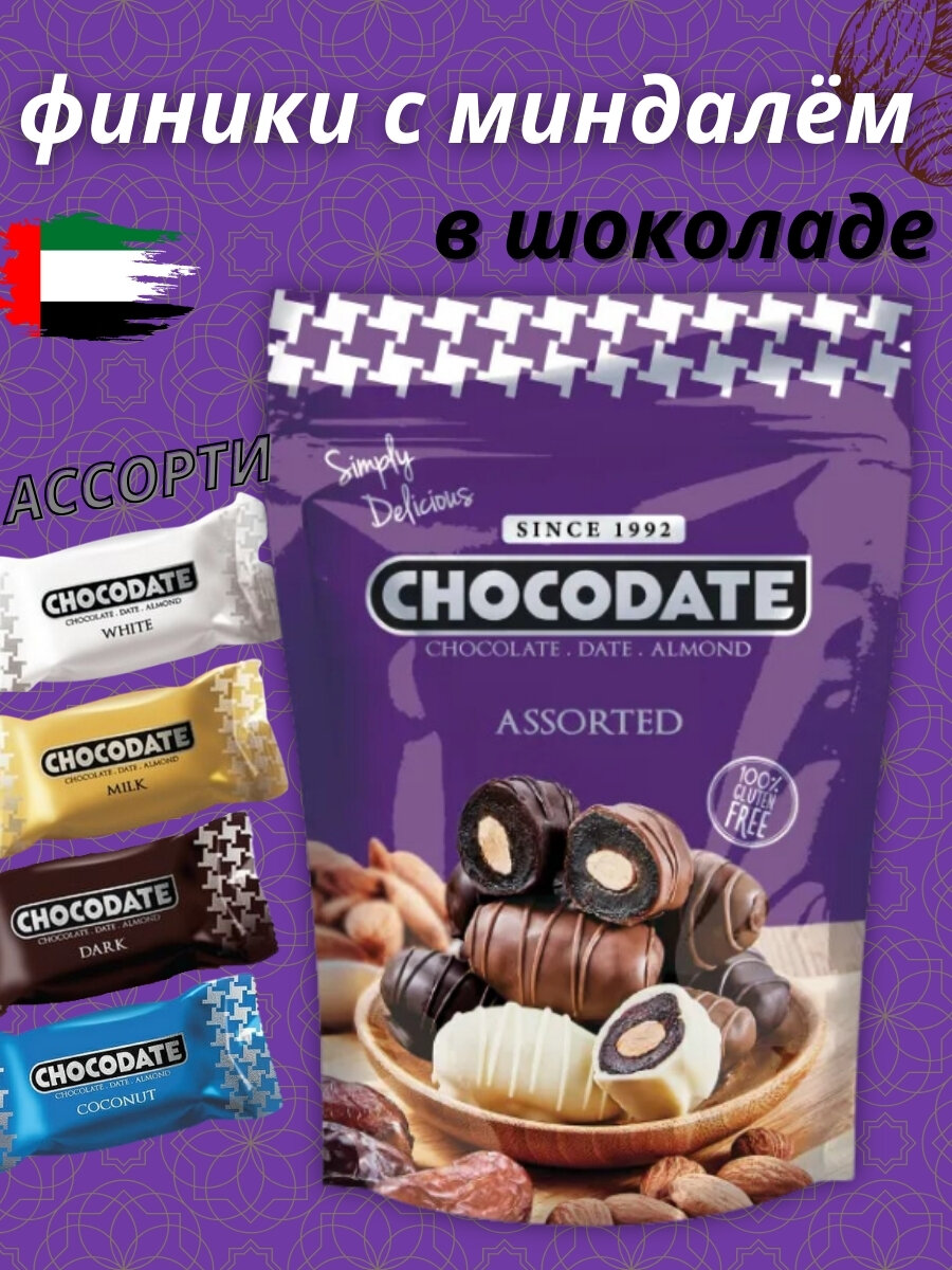 Финики с миндалем Ассорти Chocodate 100 гр, ОАЕ 499 ₽