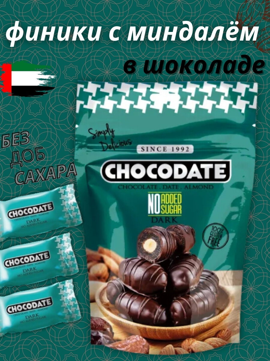 Конфеты "Финики с миндалём в темном шоколаде без добавления сахара" от бренда Chocodate 100г информация: