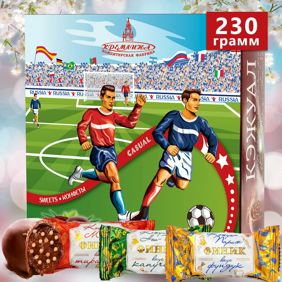 Отзывы на Подарок новогодний мужчине, набор конфет Ассорти Кэжуал со вкусами кофе, тирамису и лесного ореха в подарочной коробке "Советский футбол", 230 грамм