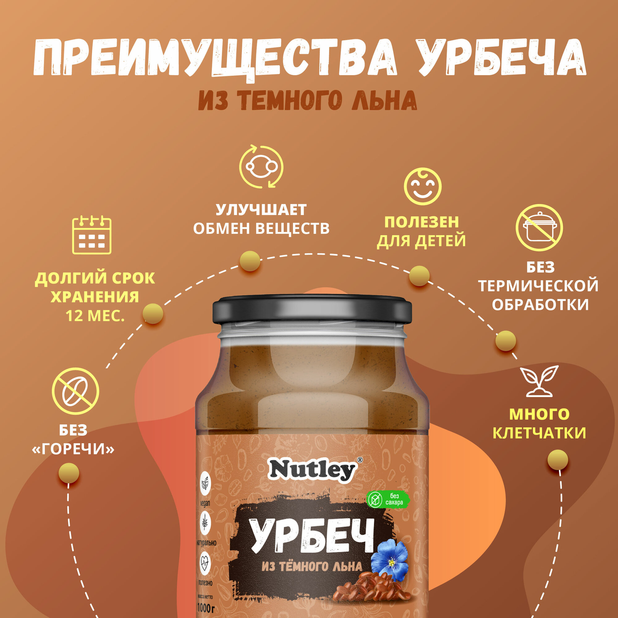 10 цен на Урбеч из семян темного льна Nutley, стеклянная банка, 900гр