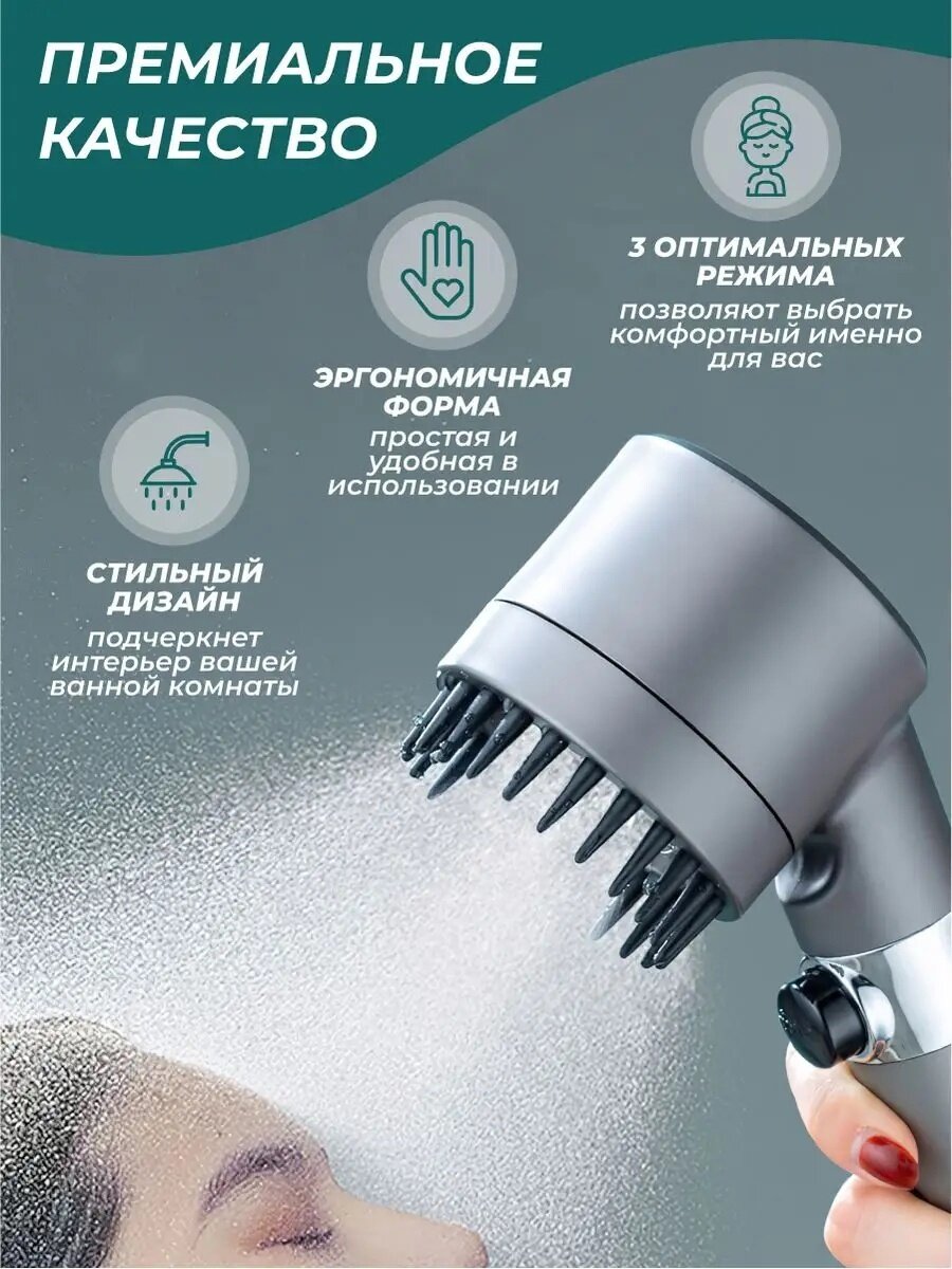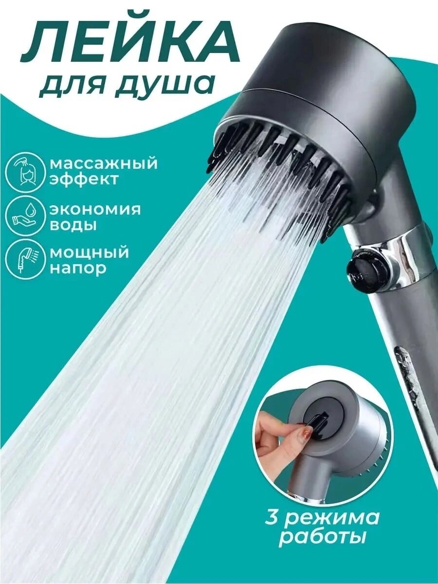 Лейка для душа 3 режима - турба (серебро)