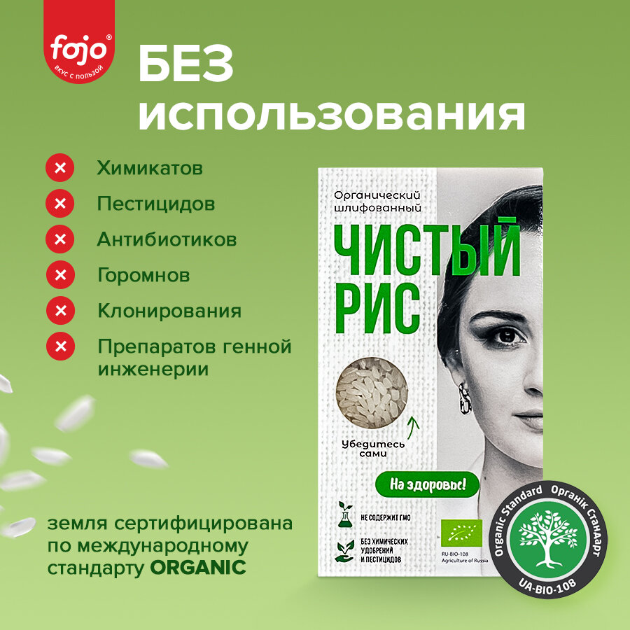 Рис органический шлифованный "Чистый рис" Первый сорт. Цельный круглозерный - 2 уп. по 500 г 619 ₽