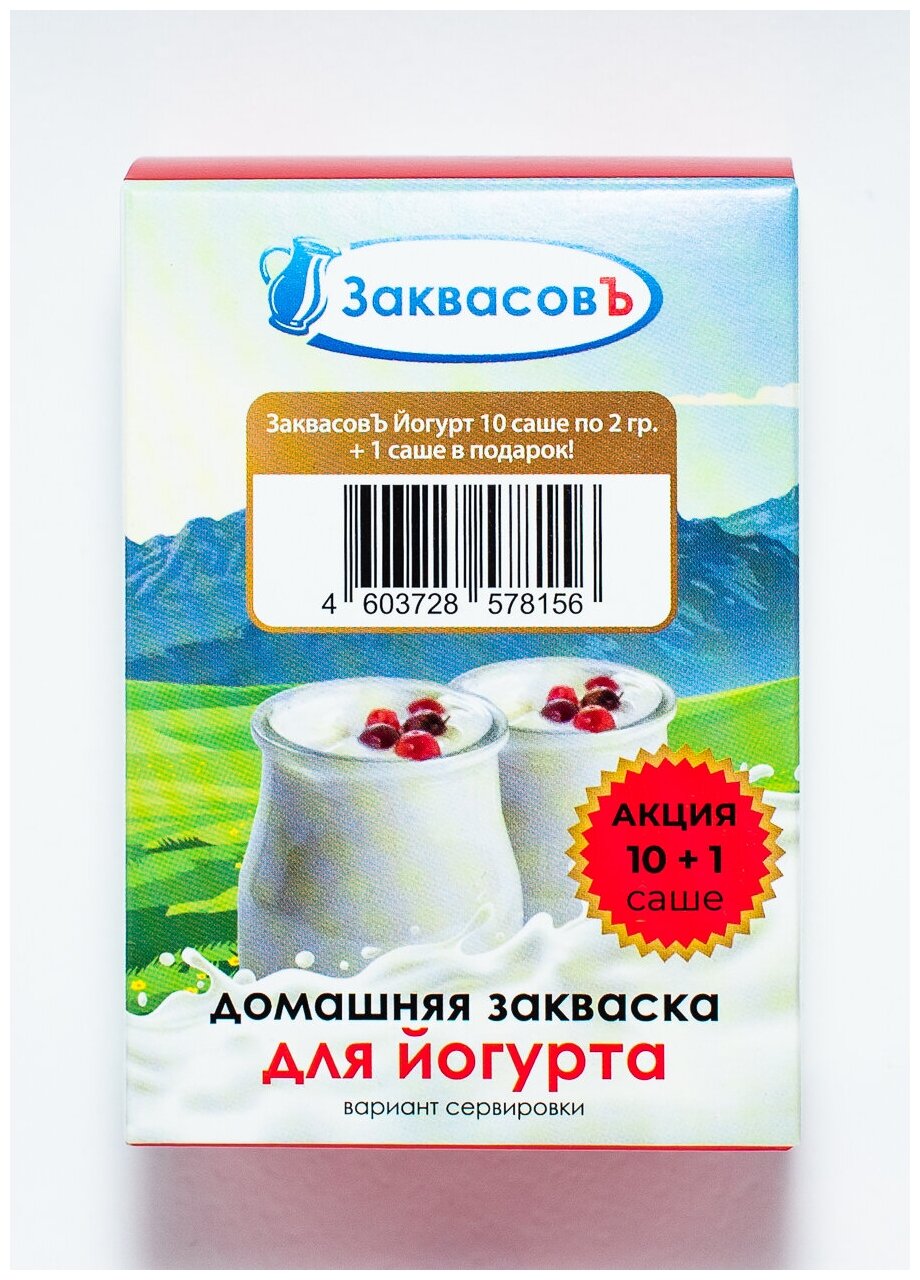 Закваска "ЗаквасовЪ Йогурт", 10 саше + 1 в подарок! информация: